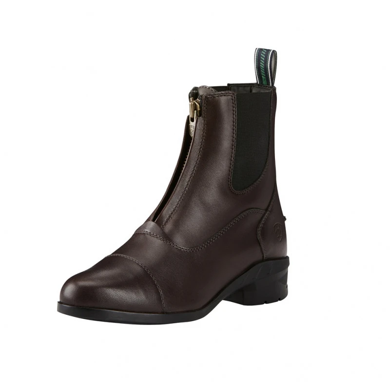 Les boots d’équitation Ariat sont faciles à enfiler et à défaire grâce à leur solide zip YKK en laiton. Une languette en tissu à l’arrière de la tige permet de les enfiler encore plus facilement. Elles disposent d’un élastique de chaque côté de la cheville et d’un large taquet à l’arrière du talon pour accueillir une paire d’éperons.