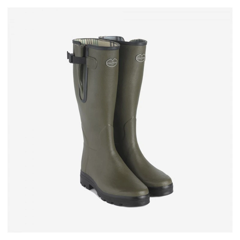 Bottes de chasse pour homme ajustĂ©es et ajustable avec soufflet Ă©tanche et bride de serrage textile. Cette exclusivitĂ© Le Chameau s’adapte Ă toutes les morphologies et apporte un confort incomparable. Doublure en Jersey.Â