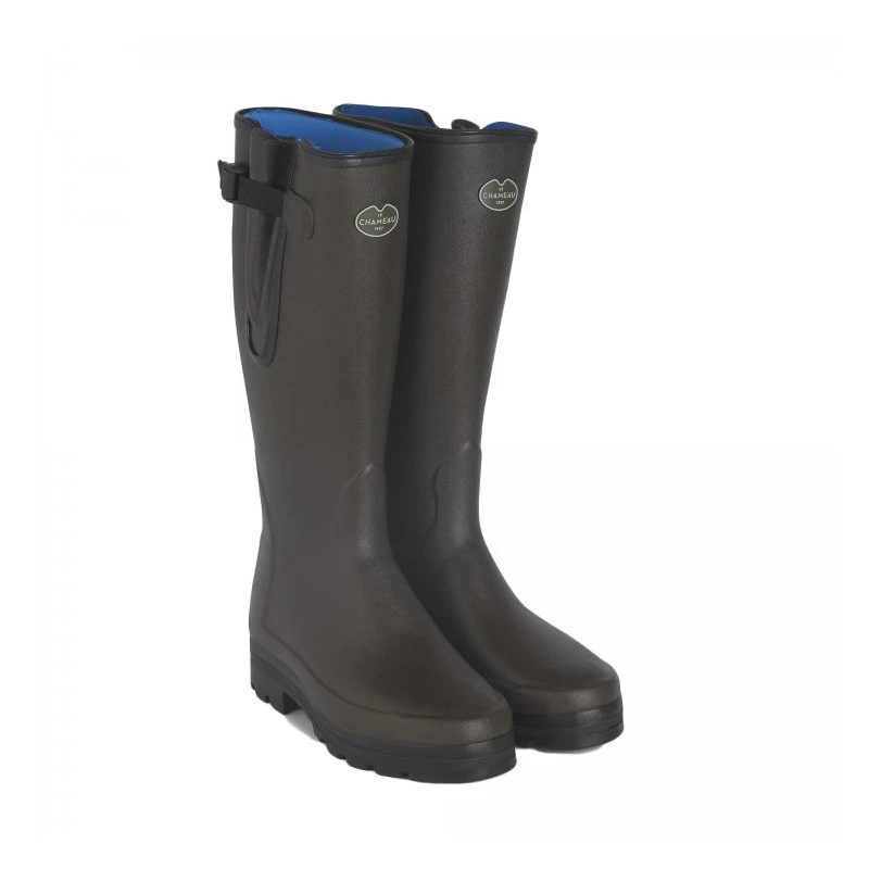 Réalisée à la main par un maître bottier, cette paire est conçue à partir de caoutchouc Chamolux souple et très flexible pour votre plus grand confort. Vous retrouverez un soufflet étanche ainsi qu’une bride de serrage pour un ajustement parfait de la jambe et du mollet.