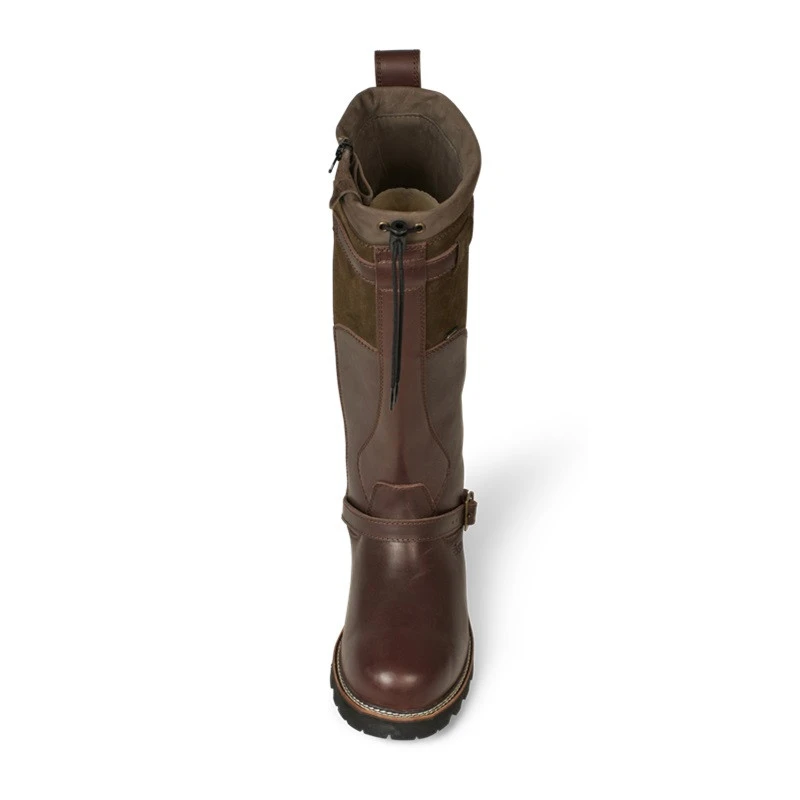 Une petite boucle en cuir au sommet de la botte permet de l’enfiler ou de la retirer facilement.